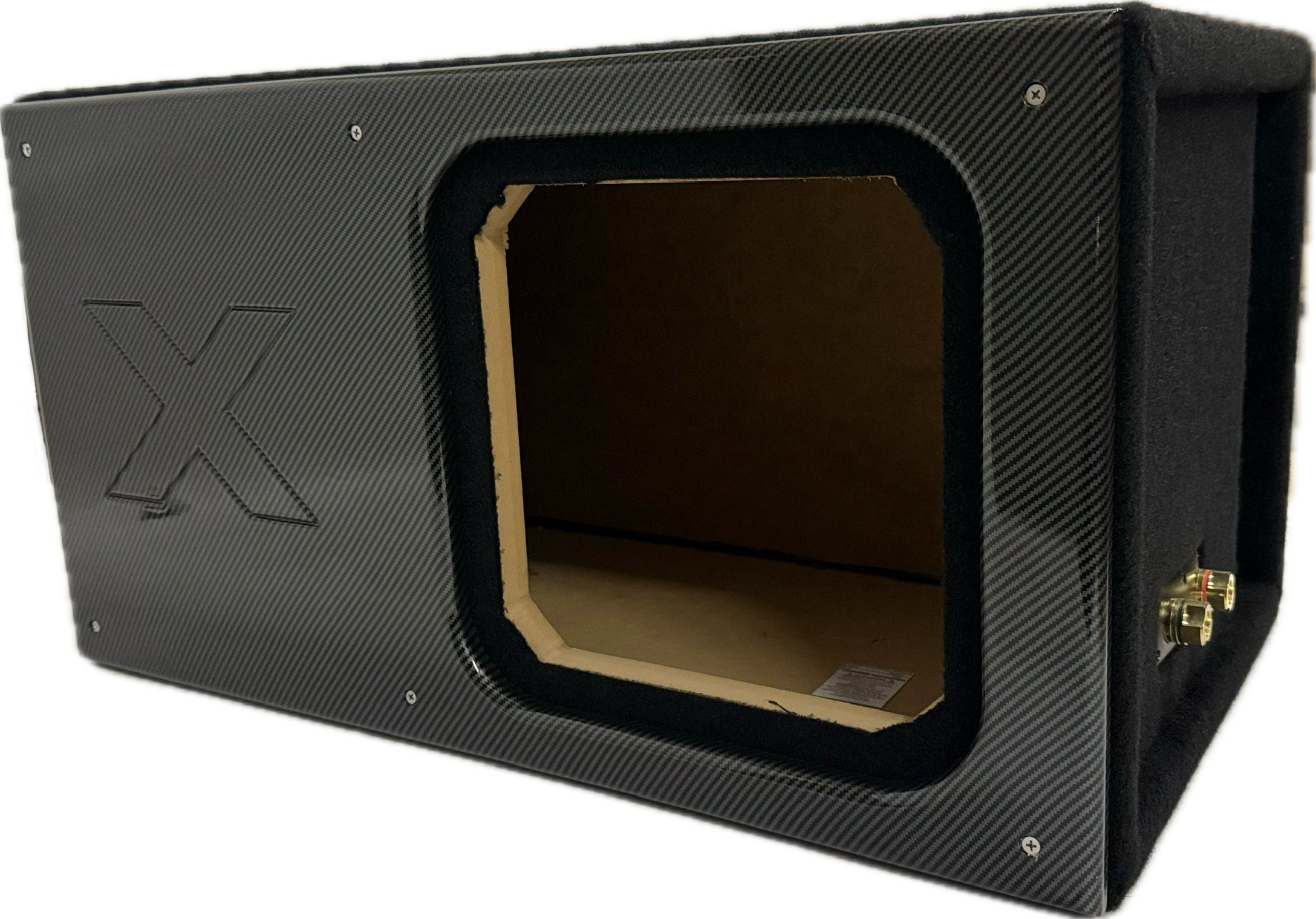 15" Single Vented SOLO X Sub Box – ALL 1" MDF – Black Super Weave Carbon Fiber Faceplate